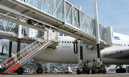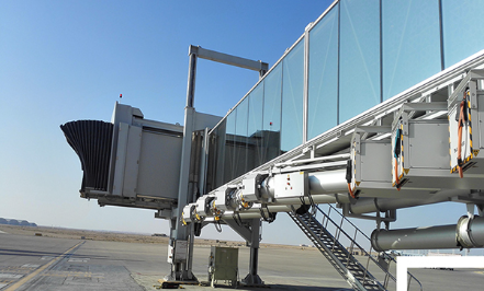 旋轉伸縮式機橋旋轉伸縮式旅客登機橋是對接飛機和機場航站樓(或固定橋)的一種帶有封閉式旅客過道的登機設備。